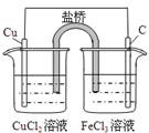 | 通電一段時(shí)間后,攪拌均勻,溶液的pH增大 | 甲電極上的電極反應(yīng)為: 2Cl- - 2e- ="=" Cl2↑ | Pt電極上的電極反應(yīng)為: O2+2H2O+4e-==4OH- | 總反應(yīng)的離子方程式為: 2Fe3++Cu==Cu2++ 2Fe2+ |