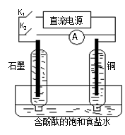 | B.?dāng)嚅_K2,閉合K1時(shí),石墨電極附近溶液變紅 |