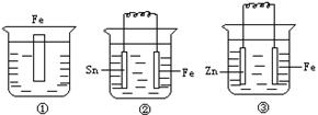 如下圖各裝置中均盛有海水,鐵在其中被腐蝕由快到慢的順序正確的是![]()
