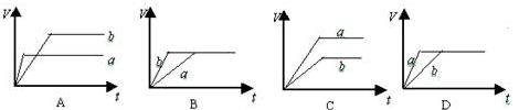 等質(zhì)量的兩份鋅粉a和b,分別加入過量的稀硫酸中,a中同時加入少量CuSO4溶液,下列各圖中表示其產(chǎn)生氫氣總體積(V)與時間(t)的關(guān)系正確的是( )![]()