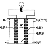 氫氧燃料電池可以使用在航天飛機(jī)上,其反應(yīng)原理示意圖如右圖。下列有關(guān)氫氧燃料電池的說法正確的是![]()