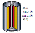 最早使用的化學(xué)電源是鋅錳電池,即大家所熟悉的干電池(dry cell),其結(jié)構(gòu)如下圖所示:盡管這種電池的歷史悠久,但對它的電化學(xué)過程尚未完全了解。一般認(rèn)為,放電時,電池中的反應(yīng)如下: