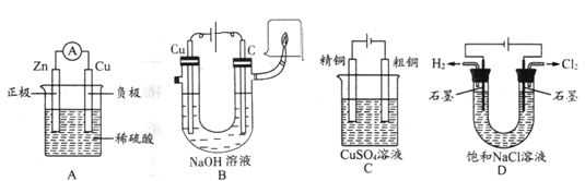 | D.電解稀硫酸制H2、O2時(shí)銅與電源正極相連 |
