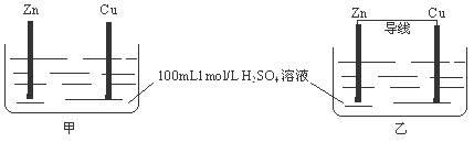 | D.甲中H+移向Zn,乙中SO42-移向Zn |