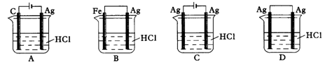 某學(xué)生欲完成2HCl+2Ag=2AgCl↓+H2↑反應(yīng),設(shè)計了下列四個實(shí)驗(yàn),你認(rèn)為可行的是![]()