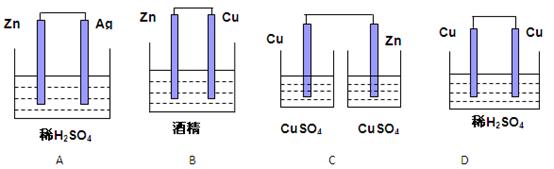 | C.鋅片、銅片,稀鹽酸 | D.銅片、銀片,F(xiàn)eCl3溶液 |