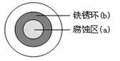 將NaCl溶液滴在一塊光亮清潔的鐵板表面上,一段時(shí)間后發(fā)現(xiàn)液滴覆蓋的圓周中心區(qū)(a)已被腐蝕而變暗,在液滴外沿形成棕色鐵銹環(huán)(b),如圖所示。導(dǎo)致該現(xiàn)象的主要原因是液滴下氧氣含量比邊緣少。下列說(shuō)法正確的是![]()