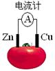 下圖為番茄電池,下列說(shuō)法正確的是![]()