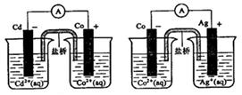 | A.2Ag(s)+Cd2+(aq)==2Ag+( aq) +Cd(s) | B.Cd(s)+Co2+(aq)==Cd2+( aq) +Co(s) |