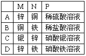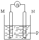 下圖所示裝置中觀察到電流計指針偏轉(zhuǎn),M棒變粗,N棒變細,指針指向M,由此判斷下表中所列M、N、P物質(zhì),其中可以成立的組合是( )