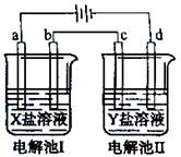 下圖所示的電解池I和II中,a、b、c和d均為Pt電極。電解過(guò)程中,電極b和d上沒(méi)有氣體逸出,但質(zhì)量均增大,且增重b﹤d。符合上述實(shí)驗(yàn)結(jié)果的鹽溶液是![]()