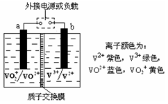 | B.充電過程中,a極的反應(yīng)式為VO2+-e-+ H2O = VO2++ 2H+ |