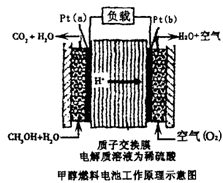 科學(xué)家預(yù)言,燃料電池將是21世紀(jì)獲得電能的重要途徑。近幾年開發(fā)的甲醇燃料電池是采用鉑作電極催化劑,電池中的質(zhì)子交換膜只允許質(zhì)子和水分子通過。其工作原理的示意圖如下:下列說法錯誤的是![]()