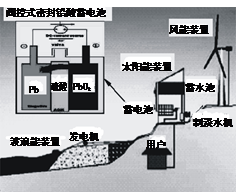 我國新建的某海島發(fā)電示意圖如圖,已知鉛蓄電池放電時的總反應(yīng)為:Pb+PbO2+2H2SO4 = 2PbSO4+2H2O,下列有關(guān)說法正確的是![]()