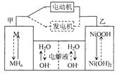 電池處于充電狀態(tài);旌蟿恿嚹壳耙话闶褂面嚉潆姵兀撾姵刂墟嚨幕衔餅檎龢O,儲氫金屬(以M表示)為負極,堿液(主要為KOH)為電解質(zhì)溶液。下圖是鎳氫電池充放電原理的示意,其總反應(yīng)式為: