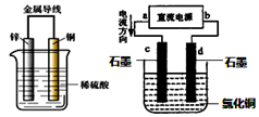 | C.d為陽極,電極反應(yīng)為:2Cl—-2e—=Cl2↑ |