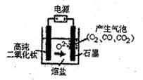 用固體二氧化鈦(TiO2)生產(chǎn)海綿鈦的裝置圖如下,其原理是在較低的陰極電位下,TiO2中的氧離子進(jìn)入熔鹽,陰極最后只剩下純鈦。下列說法中正確的是( )![]()