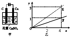 用如下圖甲所示裝置進行實驗,若圖乙中橫坐標x表示流入電極的電子的物質的量。下列敘述不正確的是( )![]()