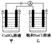 如圖所示,a,b,c,d均為石墨電極,通電進行電解,下列說法正確的是( )![]()