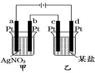| A.甲池b極上析出金屬銀,乙池c極上析出某金屬 |