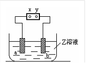 右圖中x、y分別是直流電源的兩極,通電后發(fā)現(xiàn)a極板質(zhì)量增加,b極板處有無(wú)色無(wú)臭氣體放出,符合這一情況的