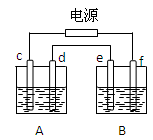 如圖,A池用石墨電極電解NaOH溶液,B池精煉粗銅,一段時間后停止通電,A池中d極產(chǎn)生具有氧化性的氣體在標(biāo)準(zhǔn)狀況下為2.24L。下列說法正確的是( )![]()