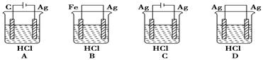 某學生欲完成反應2HCl+2Ag===2AgCl↓+H2↑而設計了下列四個實驗,認為可行的是( )![]()