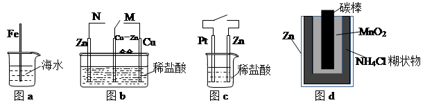 | D.圖d中,Zn-MnO2干電池自放電腐蝕主要是由MnO2的氧化性引起的 |