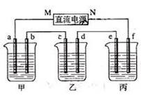 下圖所示裝置中,甲、乙、丙三個(gè)燒杯依次分別盛放100 g 5.00%的NaOH溶液、足量的CuSO4溶液和100 g 10.00%的K2SO4溶液,電極均為石墨電極。![]()