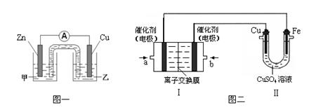 ① 圖一是根據(jù)反應(yīng)Zn + CuSO4 =" Cu" + ZnSO4設(shè)計成的鋅銅原電池。![]()