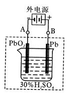 (2)在完全放電耗盡PbO2和Pb時,若按右圖連接,電解一段時間后,則在A電極上生成__________,B電極上生成________,此時鉛蓄電池的正負(fù)極的極性將____________。![]()