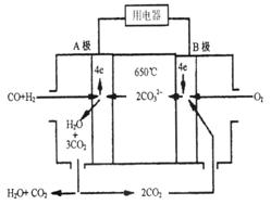 定比例Li2CO3和Na2CO3熔融混合物為電解質(zhì),操作溫度為650℃,在此溫度下以鎳為催化劑,以煤氣(CO、H2的體積比為1:1)直接作燃料,其工作原理如圖所示。![]()
