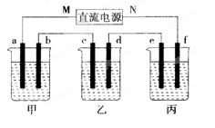 (5)欲在丙燒杯中實(shí)現(xiàn)鐵的表面鍍上一層銅,則電解質(zhì)溶液為 ,e電極的材料是: ,f電極的電極反應(yīng)式為 。