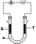 電解原理在化學(xué)工業(yè)中有廣泛應(yīng)用。右圖表示一個電解池,裝有電解液a;X、Y是兩塊電極板,通過導(dǎo)線與直流電源相連。請回答以下問題:![]()