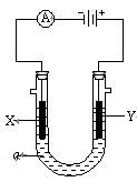 (20分)電解原理在化學(xué)工業(yè)中有廣泛應(yīng)用。下圖表示一個(gè)電解池,裝有電解液a ;X、Y是兩塊電極板,通過導(dǎo)線與直流電源相連。請(qǐng)回答以下問題:![]()