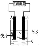 (8分)電浮選凝聚法是工業(yè)上采用的一種處理污水方法,下圖是電解污水實(shí)驗(yàn)裝置示意圖。接通直流電源后一段時(shí)間,在A電極附近有深色沉淀物沉積下來,在B電極附近有氣泡產(chǎn)生。氣泡可將污水中的懸浮物帶到水面形成浮渣層,積累到一定厚度時(shí)刮去浮渣層,即起到了浮選凈化的作用。![]()