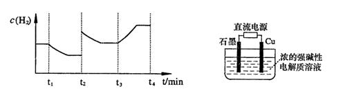 ;測得20 min時O2的物質(zhì)的量為0.0016 mol,則前20 min的反應(yīng)速率v(H2O)= ;該溫度下,反應(yīng)的平衡常數(shù)表達式K= ;下圖表示在t1時刻達到平衡后,只改變一個條件又達到平衡的不同時段內(nèi),H2的濃度隨時間變化的情況,則t1時平衡的移動方向為 ,t2時改變的條件可能為 ;若以K1、K2、K3分別表示t1時刻起改變條件的三個時間段內(nèi)的平
