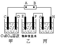 (9分)如圖為相互串聯(lián)的甲乙兩個電解池,請回答:![]()