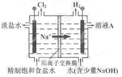(8分)氯堿工業(yè)中電解飽和食鹽水的原理示意圖如圖所示:![]()