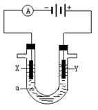 (14分)電解原理在化學(xué)工業(yè)中有廣泛應(yīng)用。下圖表示一個(gè)電解池,裝有電解液a ;X、Y是兩塊電極板,通過(guò)導(dǎo)線(xiàn)與直流電源相連。請(qǐng)回答以下問(wèn)題:![]()