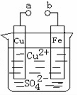 (2)a和b用導線連接時,外電路中的電子是從 電極流出(填“Fe”或“Cu”), (填Cu2+ 或SO42-)離子朝負極移動,Cu極所發(fā)生反應的電極反應式為 。
