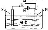 若X為碳棒,為減緩鐵的腐蝕,開關K應該置于 處。若X為鋅,開關K置于M