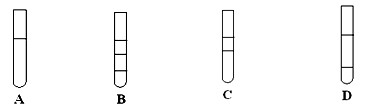 將等體積的苯、汽油和水在試管中充分混合后靜置。下列圖示現(xiàn)象正確的是![]()
