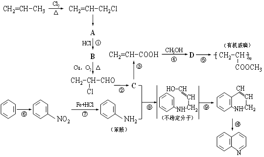 (13分)丙烯是重要的工業(yè)原料,以丙烯為原料合稱有機(jī)玻璃和藥物喹啉的流程如下:![]()