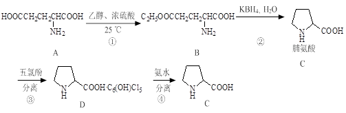 常見氨基酸中唯一不屬于α-氨基酸的是脯氨酸。它的合成路線如下:![]()
