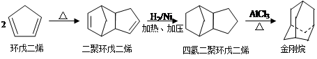 金剛烷(可以看成四個等同的六元環(huán)組成的空間構(gòu)型)是一種重要的化工原料,工業(yè)上