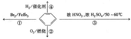 | D.反應(yīng)④中1 mol苯最多與3 mol H2發(fā)生加成反應(yīng),是因?yàn)楸椒肿雍腥齻(gè)碳碳雙鍵 |