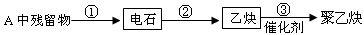 (1)試管A中殘余物有多種用途,如下列轉(zhuǎn)化就可制取高聚物聚乙炔。![]()