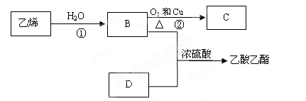 2CH3COOH。若以乙烯為主要原料合成乙酸,其合成路線如下圖所示。![]()