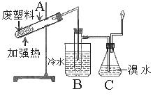 (12分)某些廢舊塑料可采用下列方法處理:將廢塑料隔絕空氣加強熱,使其變成有用的物質(zhì)。以加熱處理聚丙烯廢塑料為例,實驗裝置如下左圖,處理后得到的產(chǎn)物如下右表。![]()